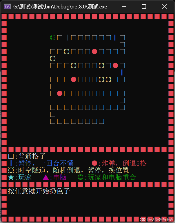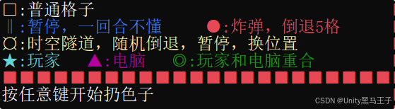 Console.Write("{0}踩到了炸弹,退后5格", p.type == E_PlayerType.Player ? "你" : "电脑");