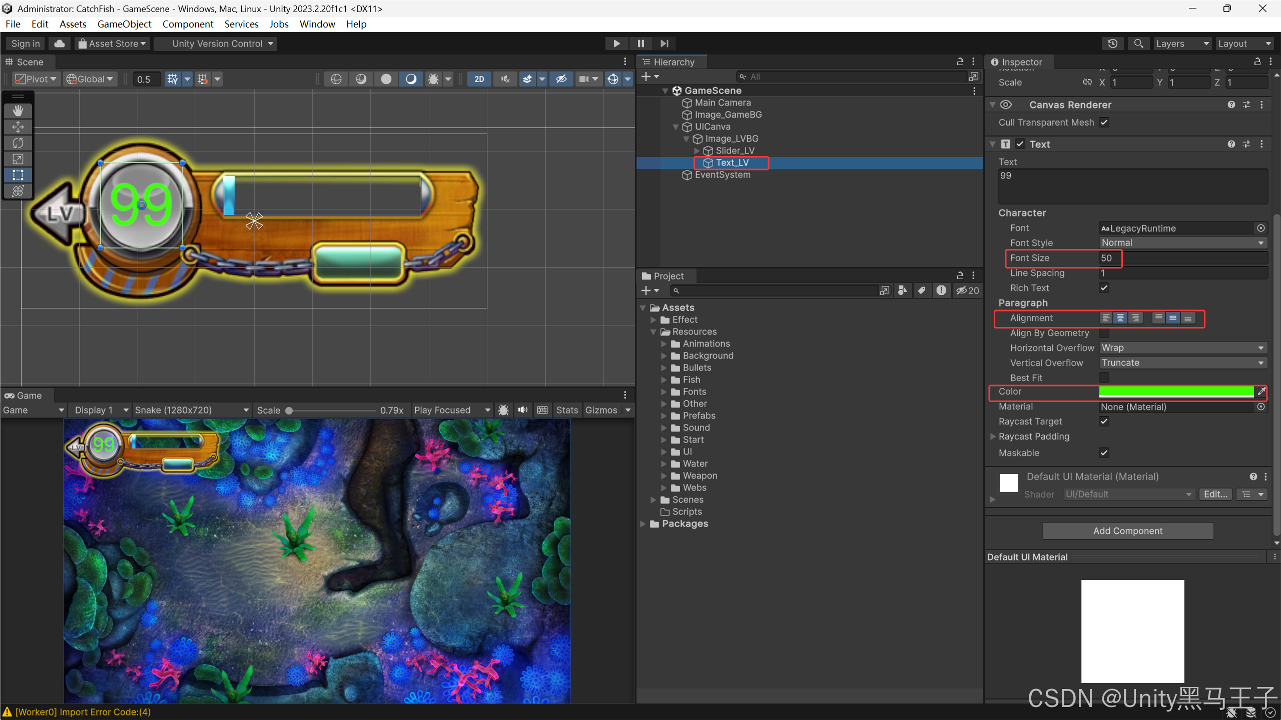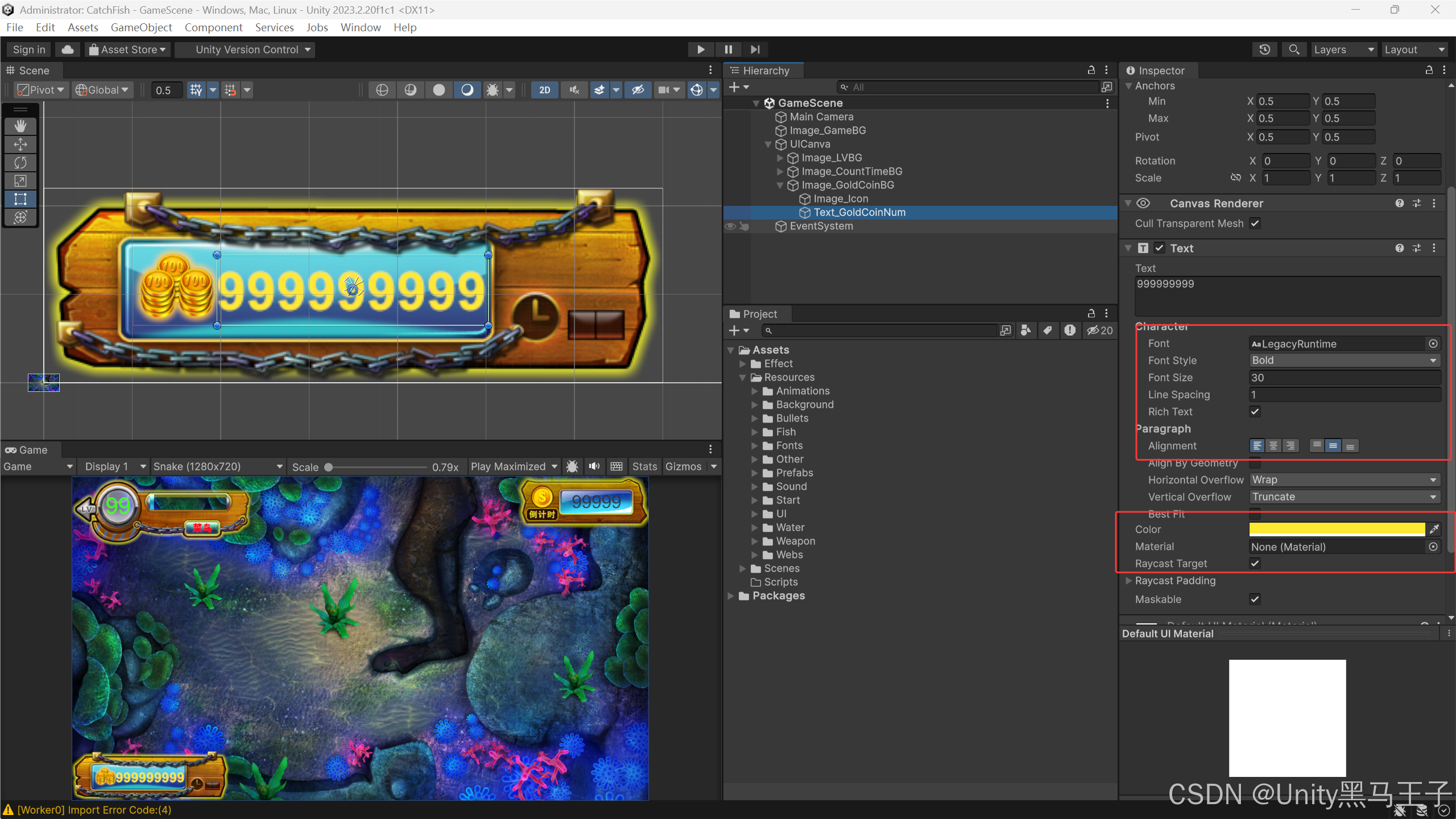 Update_Coin_Text在Update中每帧调用,优化后改为 “数值变化时外部调用”(例如捕获鱼或发射子弹后调用),减少不必要的 UI 刷新。 -