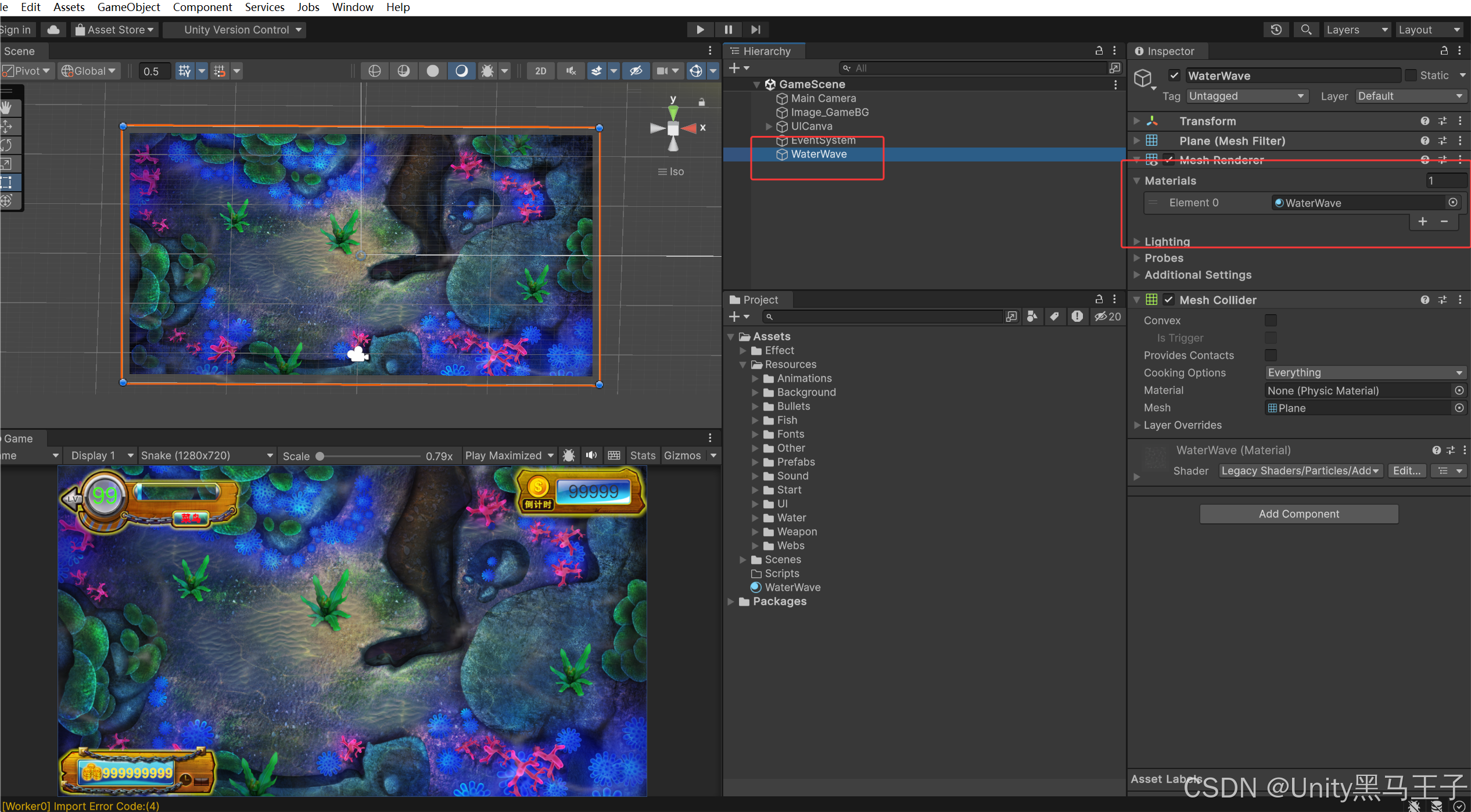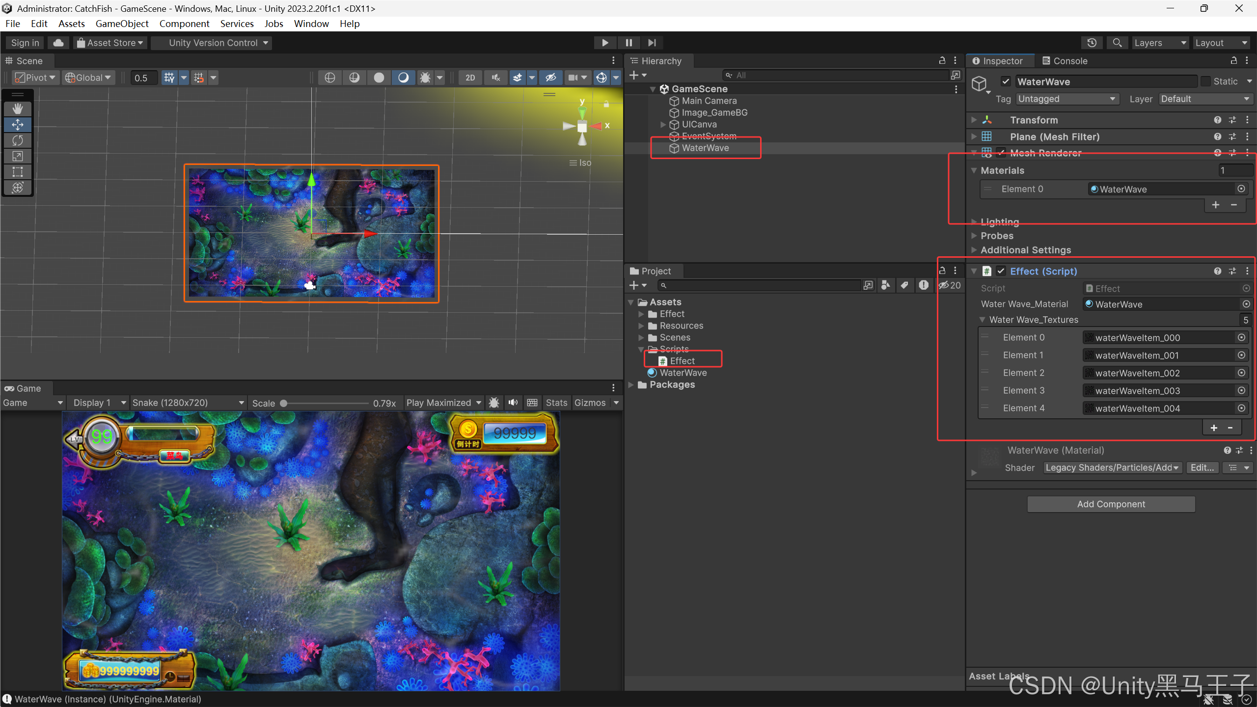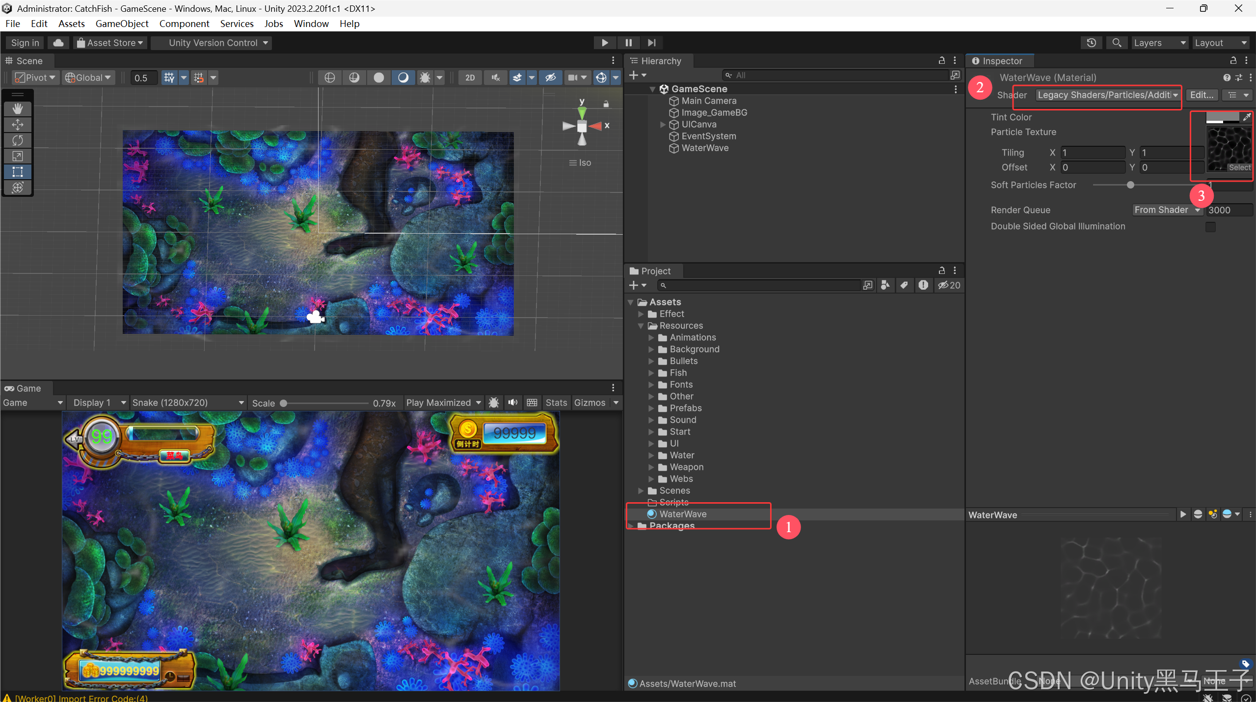 (1)创建一个材质,选择Shader按照图中所找,然后拖入Texture即可生成水波纹材质