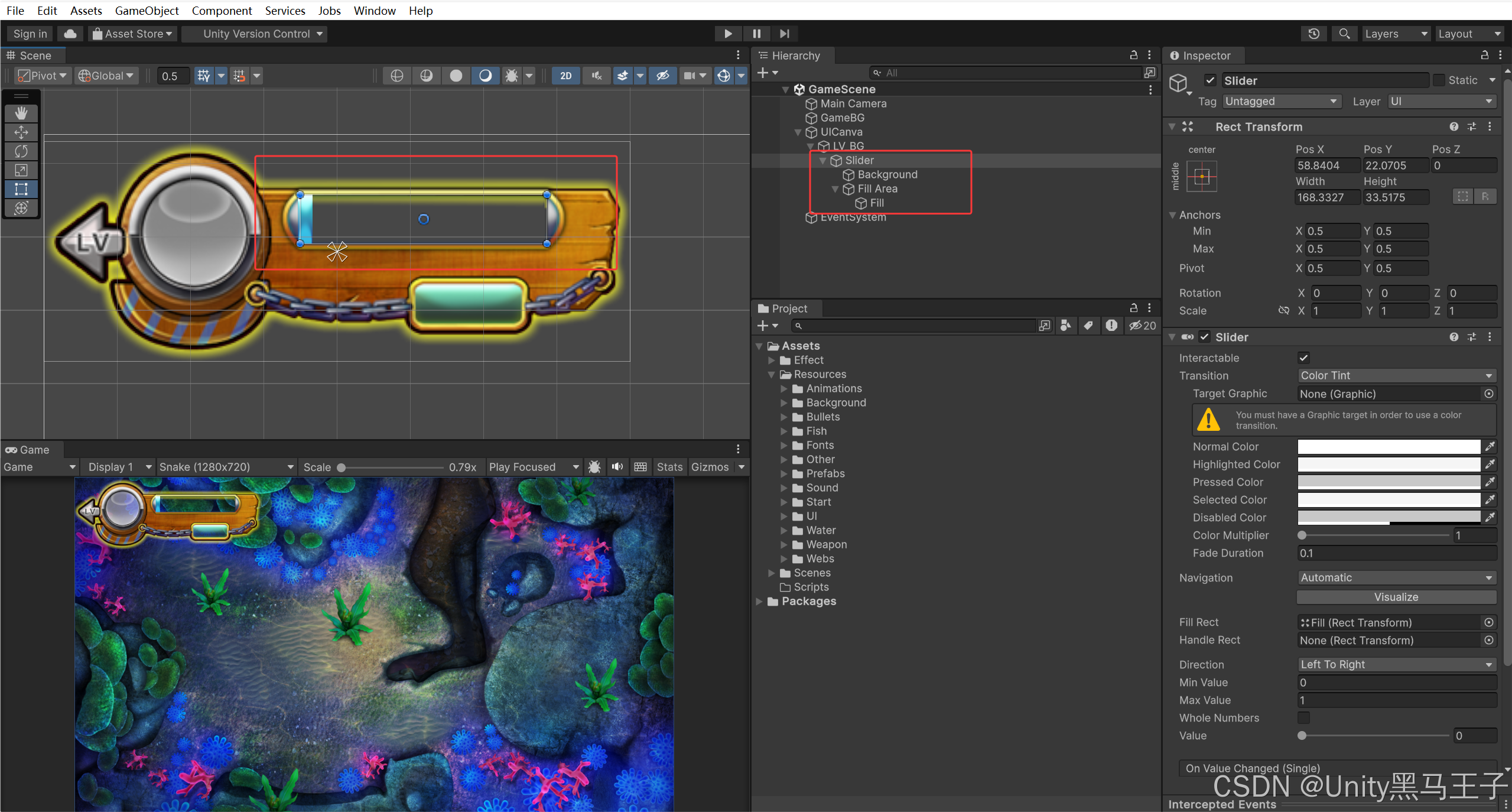 4.创建1个slider滑条作为经验条,删除滑条的滑头,给fill换成经验条素材