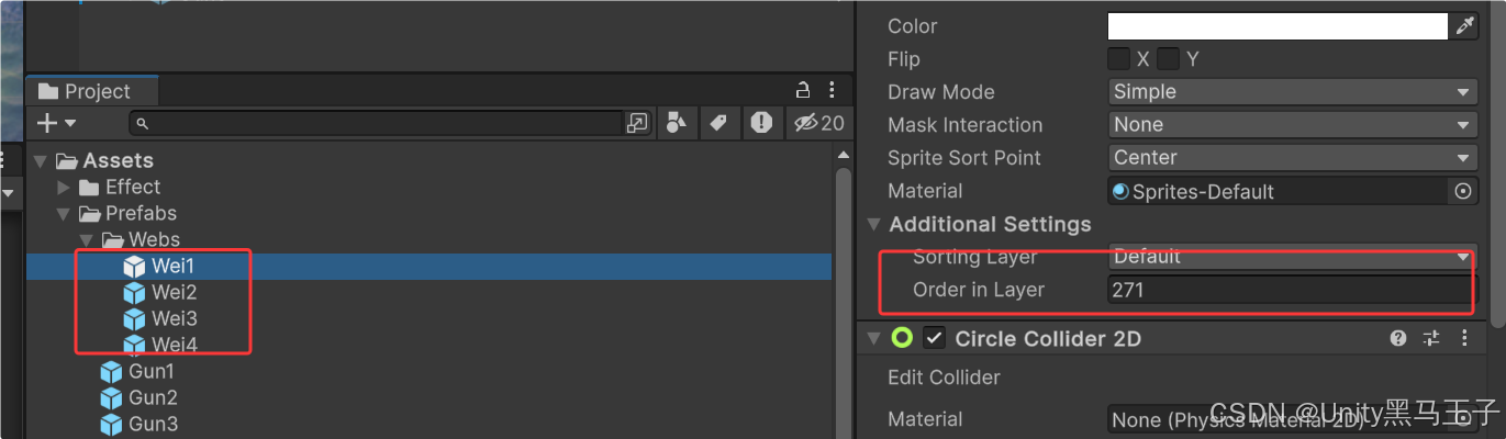 (1)创建4个2D Sprite 方形,添加炮台素材