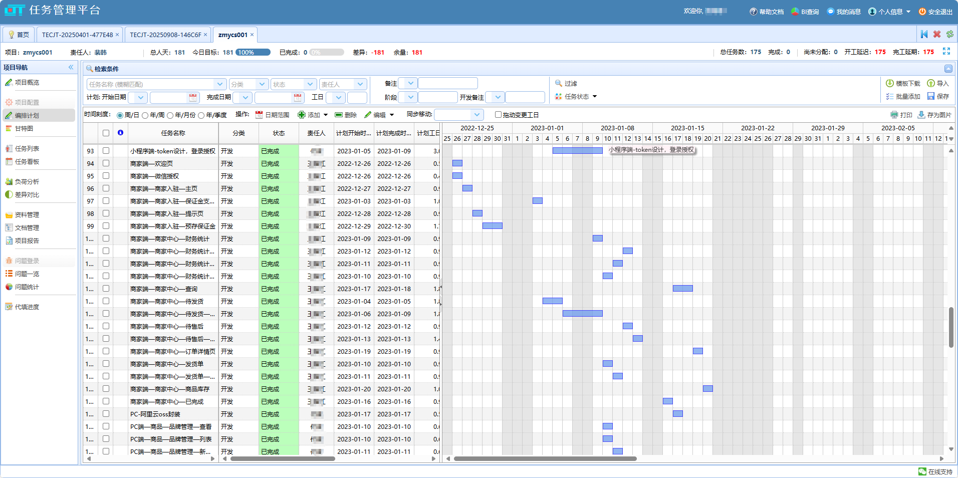 面对复杂的任务依赖和进度跟踪,一张清晰的甘特图 至关重要。PJMan项目进度管理软件内置了强大的甘特图功能,能够直观地展示整个项目的全貌。在PJMan中,您可以轻松完成任务分解、拖拽式调整工期、建立任务关联,任何进度的延迟都会自动高亮显示,帮助项目经理第一时间发现风险,确保项目始终在可控的轨道上运行。