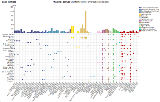ACVR1表达在微胶质细胞,少突神经胶质细胞前体细胞,兴奋性神经元细胞,抑制性神经元细胞中,在腺上皮细胞,鳞状上皮细胞,特化上皮细胞,内分泌细胞,间充质细胞,免疫细胞中也有少量表达。