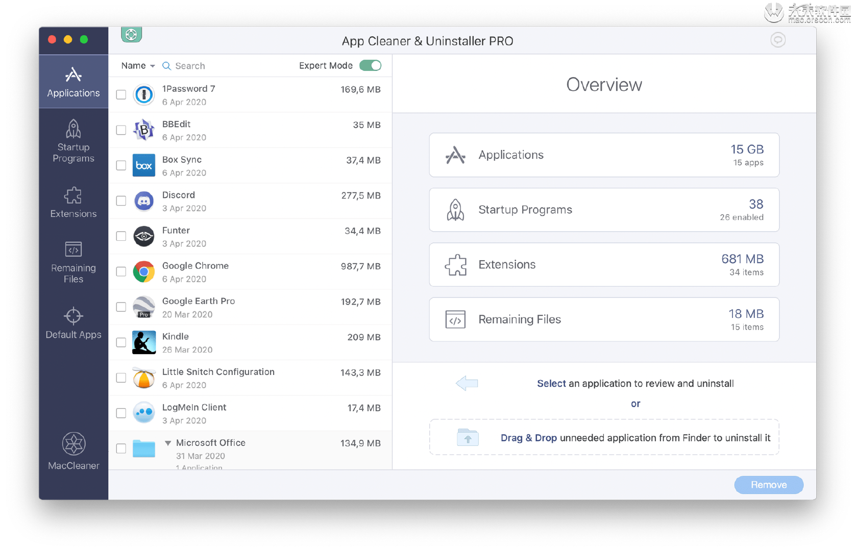 方便使用的另一套工具套件是App Cleaner&Uninstaller,顾名思义,它可以帮助用户维护和控制系统上的各种应用程序。列出了应用及其所有相关文件,包括可执行文件,缓存和支持文件,因此您可以确切知道每个应用占用了多少空间。只需单击“删除”按钮,即可卸载它们,然后MacCleaner Pro 2.0会处理其他所有事情,确保不会遗漏任何杂物。