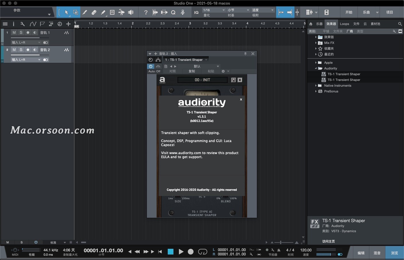 Audiority TS-1 Transient Shaper 是一款专为改善音频信号瞬态响应而设计的工具,具备独立的Attack和Sustain检测电路,支持多种格式包括VST2、VST3、AU及AAX 64位。适用于OSX 10.8及以上版本,推荐使用英特尔i5或更高配置。