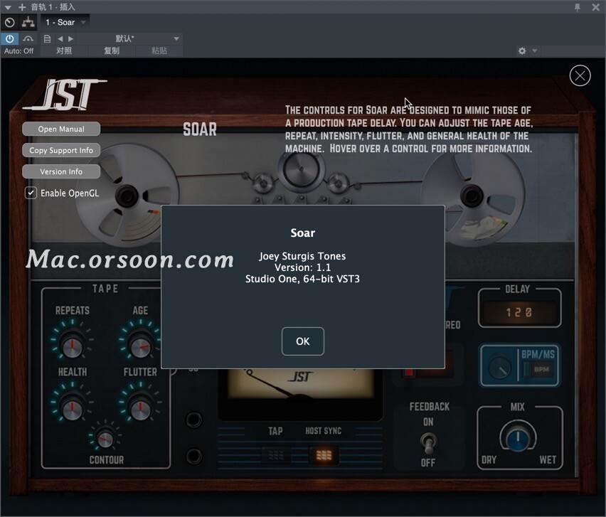 这款Mac版插件JoeySturgis TonesSoar提供了真实的模拟磁带处理效果,拥有磁带控制、健康和轮廓调整等特性,适合寻求自然延迟效果的音乐制作人。立即体验传统与现代结合的音频处理工具。