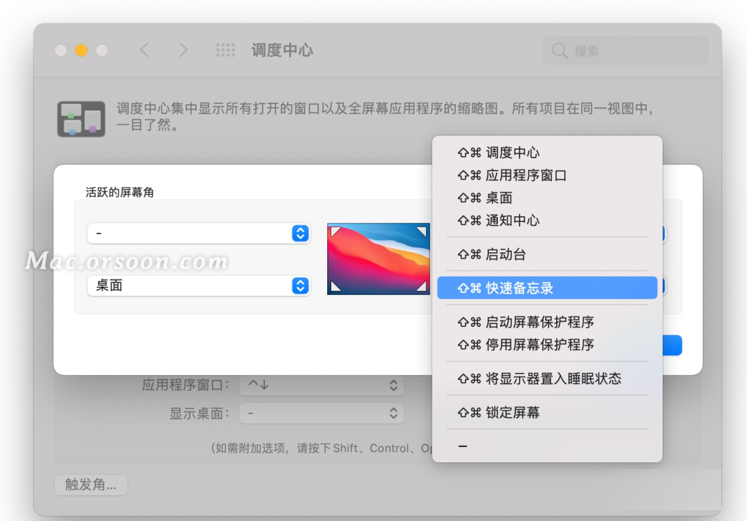 这个在 iPad 上非常好用的功能,感觉在 macOS 12 上并不怎么有效率。有时候它还会在电脑唤醒的时候错误激活了窗口焦点,导致鼠标都出不来了。再加上像我平时习惯用Devonthink来收藏一些笔记,这功能对我就显得更鸡肋了。所以你可以在:“系统偏好设置”/“调度中心”/“触发角”中关闭它。