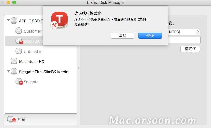 综上所述,通过应用Tuxera NTFS for Mac磁盘管理中的格式化功能,可将NTFS格式的磁盘抹掉,并转换为其他指定的格式。