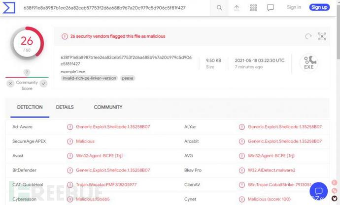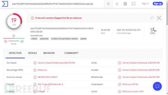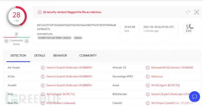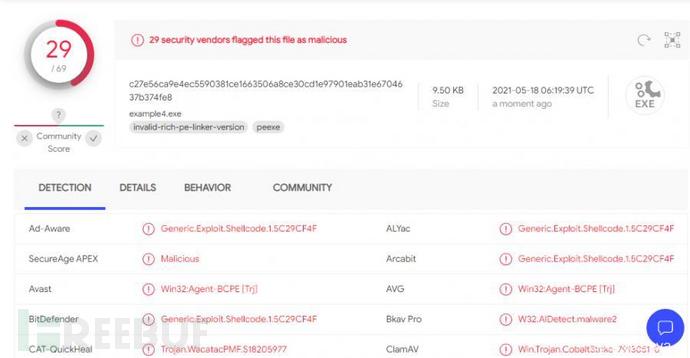 上面几种方式的免杀效果不是特别好,因为我们没有对shellcode进行任何处理,我们可以根据上面我们提到的shellcode免杀思路,我们对shellcode进行编码或者分离免杀。这里我们直接编写一个分离免杀的加载器