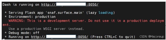 补充说明:现在运行的这个dash 是组合在SNAF程序里面的。作者将DASH 里面的host设置成了hostname。所以在运行的时候,这里显示的是:Running on http://hostname:8050/。在windows 的web 浏览器中输入这个连接,显示拒绝访问。