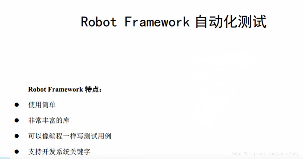 最近一段时间想要学习自动化测试框架RF的时候,发现网上的RF资料都特别少或者就是要很多钱的,所以我在学习完之后就想要写一些博客造福一下大家,顺便加深一下自己的理解
