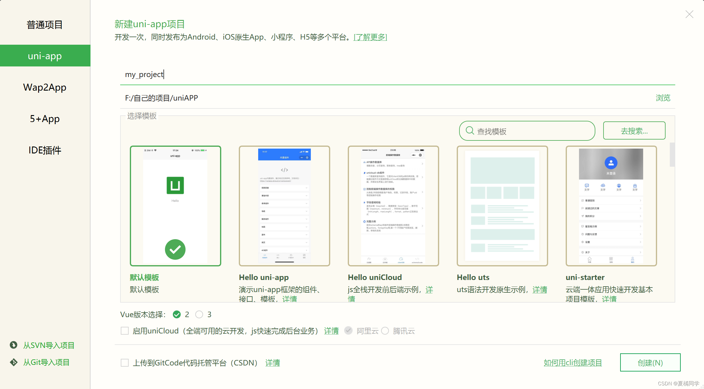 vue create -p dcloudio/uni-preset-vue 【project_name】(自己起的项目名字)