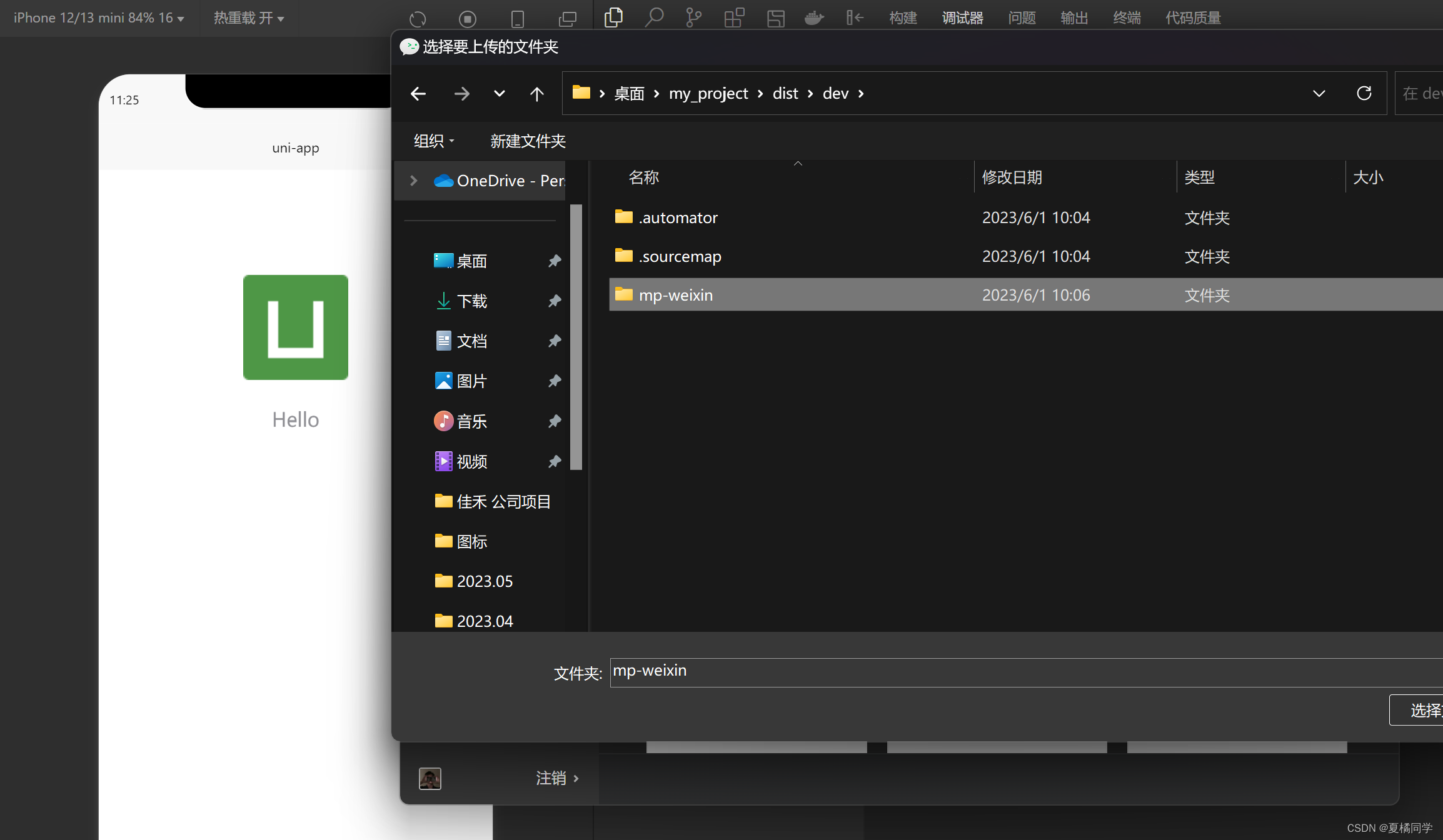 在dist文件夹里的dev文件夹找到 mp-weixin文件夹 用微信web开发者工具打开即可