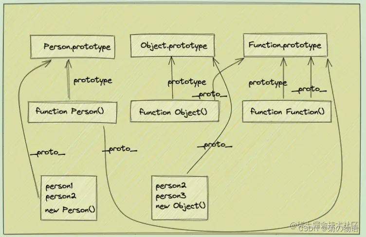 习惯称作“隐式原型”,每一个对象实例都有的属性,该属性指向他构造函数的“显示原型”。Function对象的__proto__属性比较特殊指向了Function的显示原型“prototype”上,这也比较好理解,Function对象的构造函数也是Fuction类型,所以指向了它自身的显示原型上。