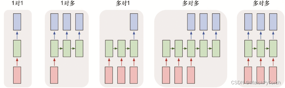 人类通过从左到右阅读词序列来理解文本,并构建了可以理解文本数据中所有不同内容的强大模型。RNN的工作方式有些许类似,每次只查看文本中的一个词。RNN也是一种包含某特殊层的神经网络,它并不是一次处理所有数据而是通过循环来处理数据。由于RNN可以按顺序处理数据,因此可以使用不同长度的向量并生成不同长度的输出。图6.3提供了一些不同的表示形式。