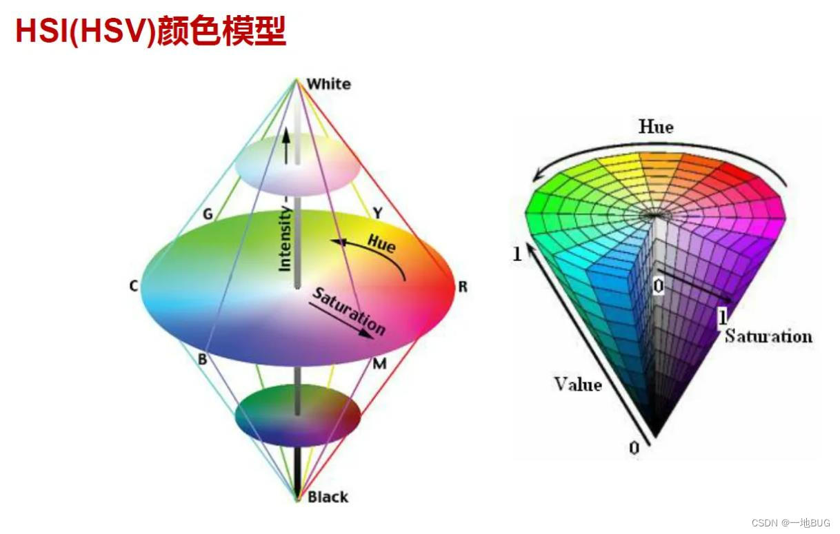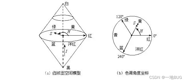 HSI〔Hue-Saturation-Intensity(Lightness),HSI或HSL〕颜色模型用H、S、I三参数描述颜色特性,其中H定义颜色的频率,称为色调;S表示颜色的深浅程度,称为饱和度;I表示强度或亮度。