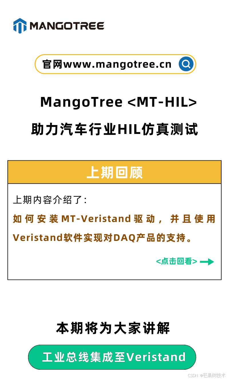 MT-HIL(3):将工业总线模块(CANFD、串口等类型)集成至Veristand 访问 https://www.mangotree.cn/p/1061841/ 无需等待连载, 即可查看MT-HIL所有完整教学视频