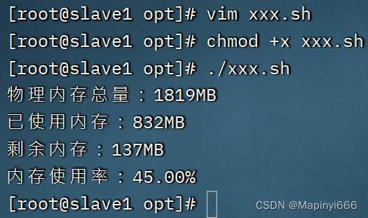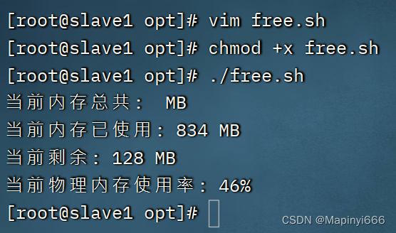 三、查看当前内存的总大小、实际使用大小、剩余大小、显示使用率百分比的脚本