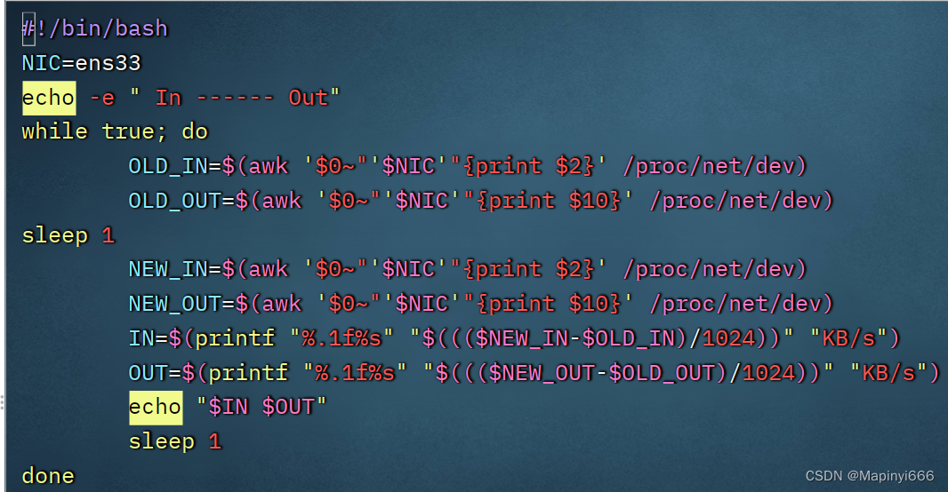 OLD_OUT=$(awk '$0~"'$NIC'"{print $10}' /proc/net/dev)