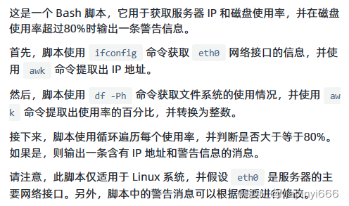 echo "磁盘使用已到$disk ,请注意" && exit 0:打印磁盘使用率达到阈值的警告信息,并退出脚本。 -