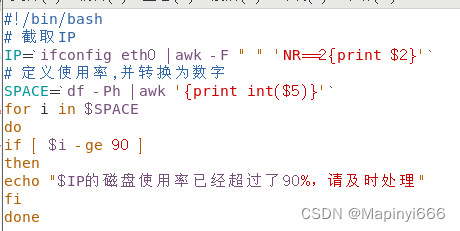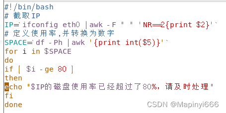 if [ $disk -ge $disk1 ]; then:如果磁盘使用率大于等于阈值disk1,则执行下面的命令。 -