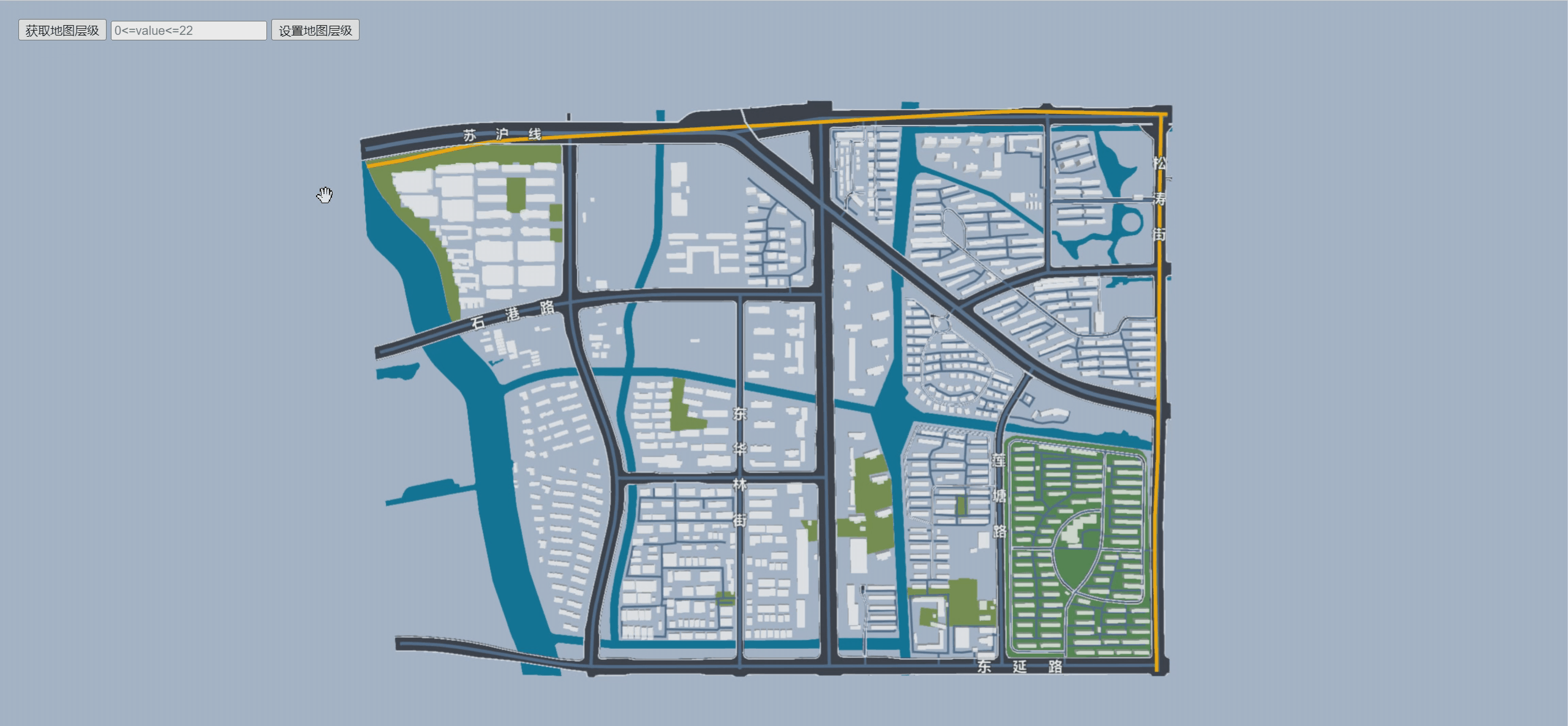 通过getZoom()获取地图层级,setZoom()设置地图层级,在代码中我们添加两个按钮,分别获取地图层级和设置层级