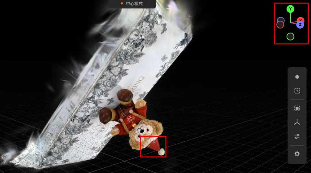 首先我们一般可以看到,查看器右上角有个很明显的XYZ轴。我们刚进入查看器后什么都别动,XYZ这个初始的方向就是世界坐标系的指向,我们只需要关心指向上方的是哪根轴就行。这个场景中就是Y轴。