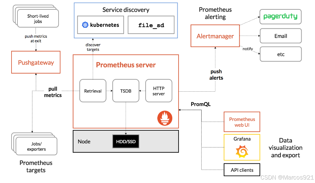 - 时间序列收集是通过HTTP上的拉取模型进行的