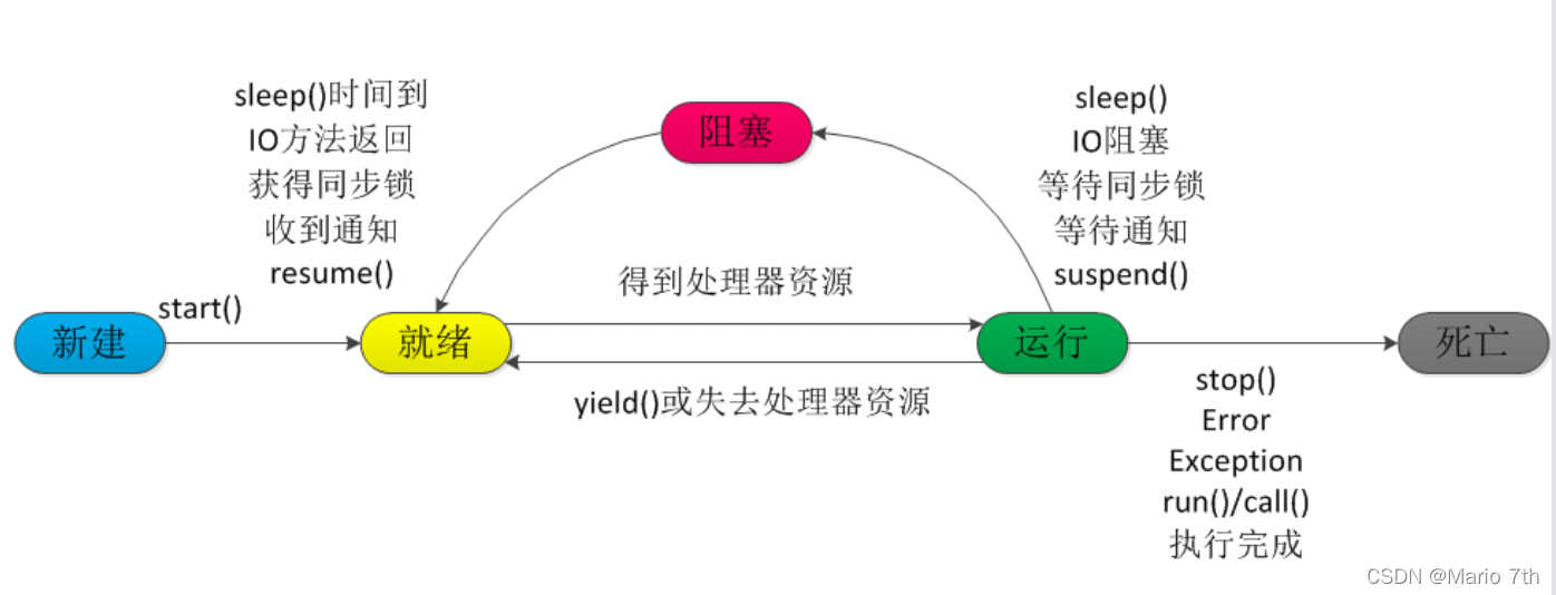 运行状态:如果处于就绪状态的线程获得了cpu的时间片,那么就进入了运行状态,开始执行run方法。