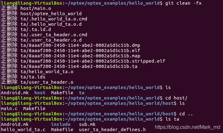 先来看下 ~/optee/optee_examples/hello_world 示例代码的目录结构: