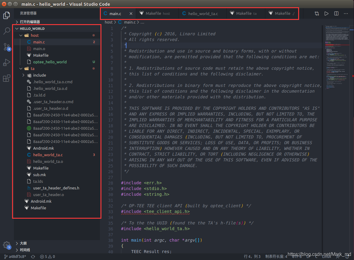 ta 文件夹存放的是 TA的代码,重要文件是 hello_world_ta.c。