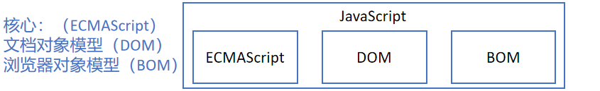 尽管 ECMAScript 是 JavaScript 的标准,但它并不是 JavaScript 唯一的部分,也不是唯一被标准化的部分,实际上,一个完整的 JavaScript 实现是由以下 3 个不同部分组成的。