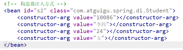 构造器注入方式的前提是所使用类中具有构造器方法,数目和类型必须一致 如果不一致报错!