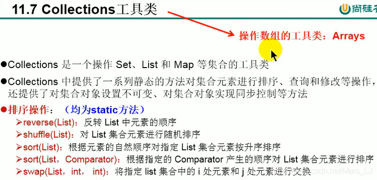 swap(List,int, int):将指定 list 集合中的 i 处元素和 j 处元素进行交换