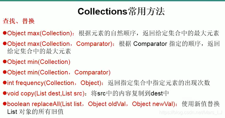 boolean replaceAll(List list,Object oldVal,Object newVal):使用新值替换 List 对象的所有旧值