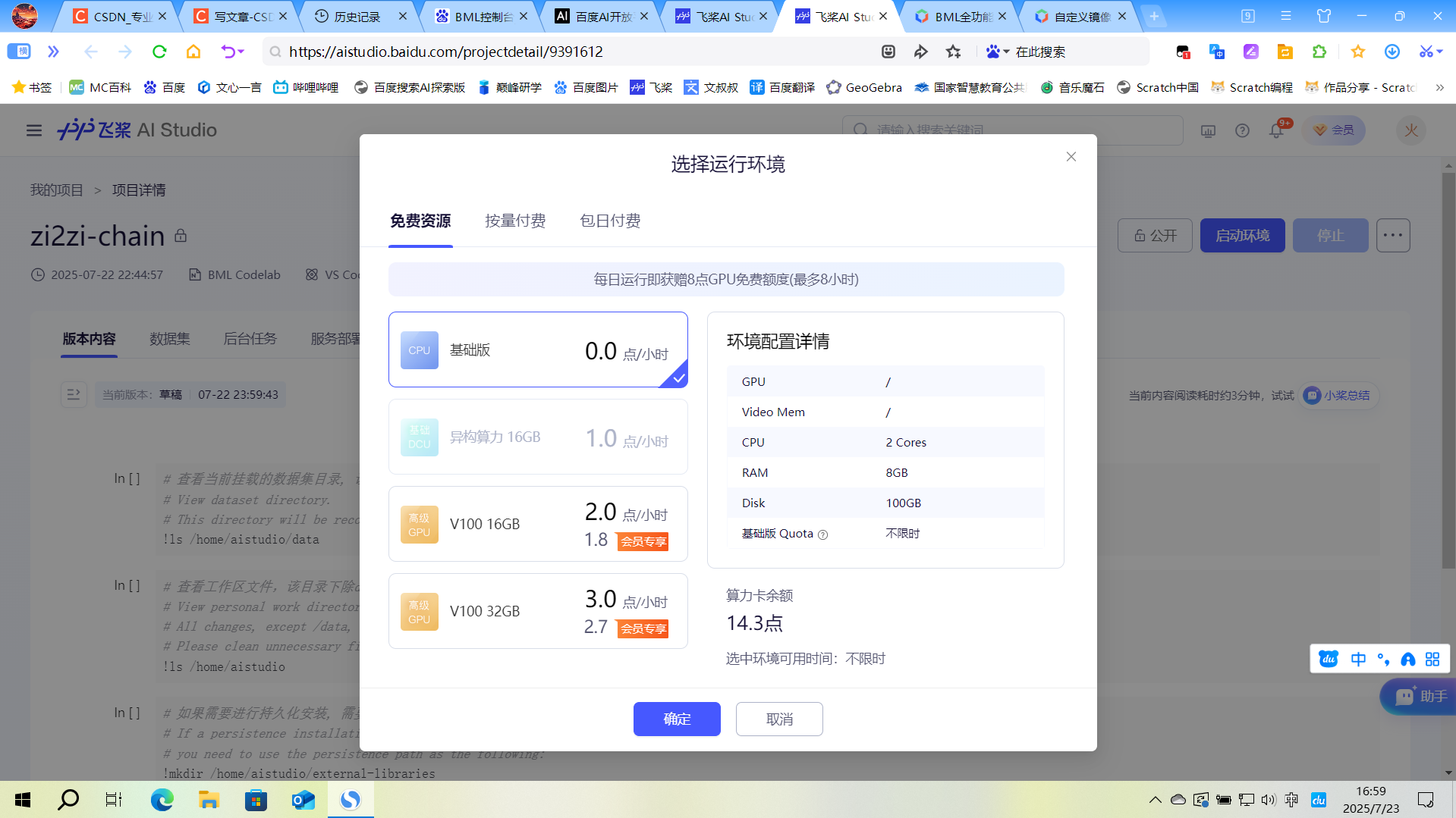 - 每天上线免费送的算力可以在GPU环境中运行4小时,并且CPU环境不限制时长