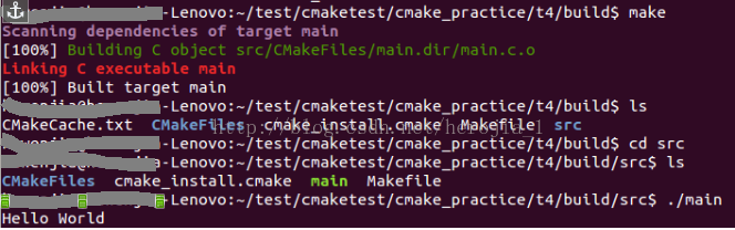 新建目录t4用于存放可执行文件工程,再建个src,在src中建CMakeLists.txt,类似前面的步骤,清单1如下: