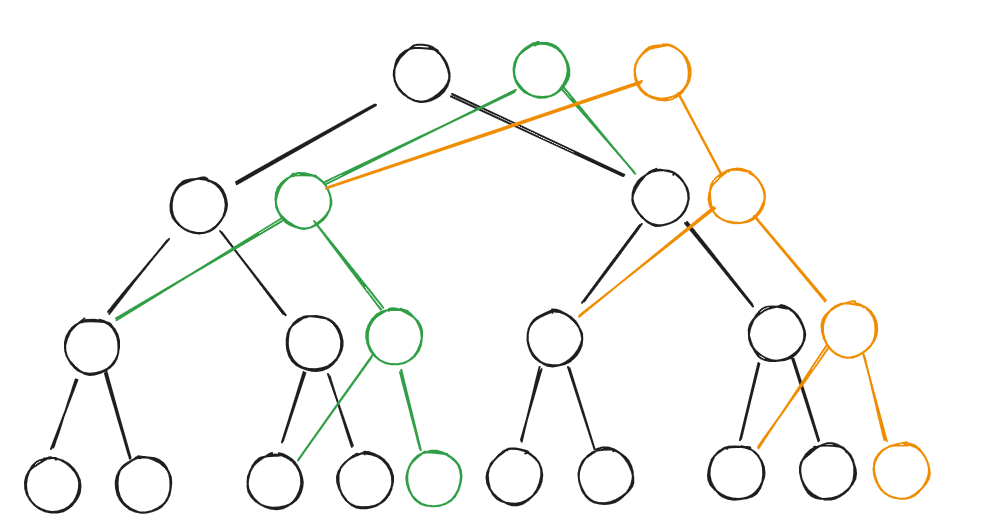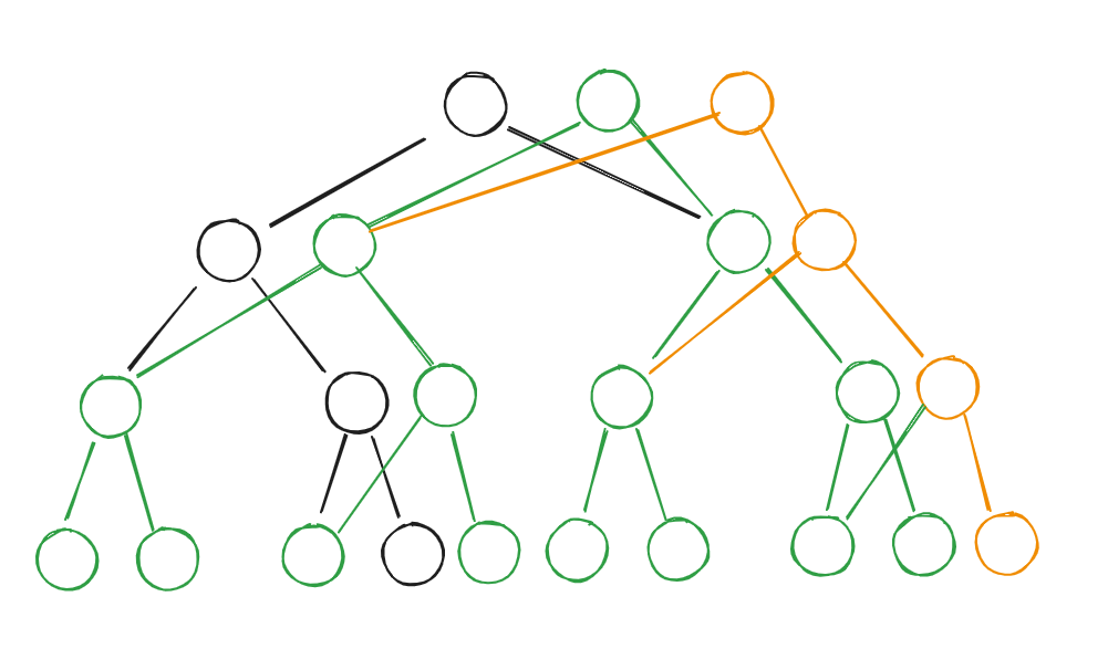 在上图中,绿色点是黑色点的修改版本,橙色点是绿色点的修改版本,但是修改的节点不在绿色链上。