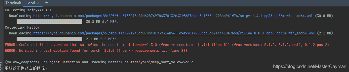 明明就是复制的官网的命令去执行的,而且我去它的whl下载的网址中查看:https://download.pytorch.org/whl/torch_stable.html ,发现确实有对应的版本存在。