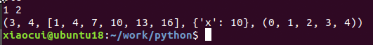 anyparas(1,2,3,4,list(range(0,20))[1:19:3], {'x':10}, tuple(range(0,5)))
