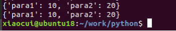 print(parasindict2(lname='cui',fname='jidan', para1=10, para2=20))