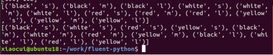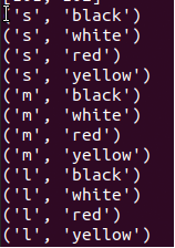 上述两个clothes列表的个数相同,但是生成过程不同,clothes1先取得每个颜色,然后匹配每个颜色对应的size,clothes2先取得每个size,然后匹配每个size对应的颜色