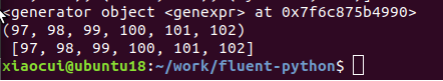 生成器表达式只返回一个迭代器,如果需要显示迭代器的内容,需要将迭代器传入list函数or tuple函数