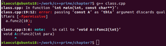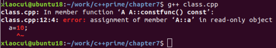 显示成员变量a是只读的,如果将const修饰符去掉,则也能顺利编译通过