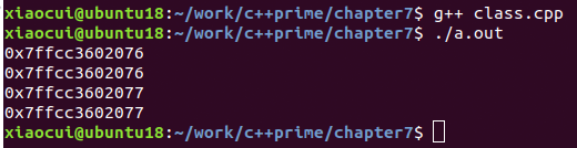 通过上述结果可知,this指针的值和类各自的对象的地址值相等。