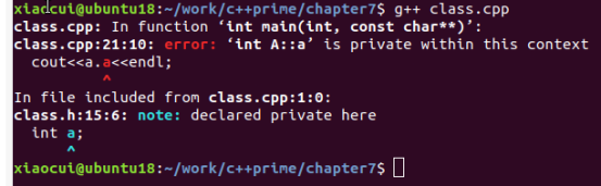 上面代码在类的定义的过程中都出现了public和private,public访问控制符表示该访问控制符下面的成员在整个程序中是可访问的,而private访问控制符表示该访问符下面的成员只能在类中的成员函数中才能被访问