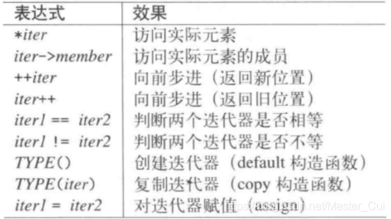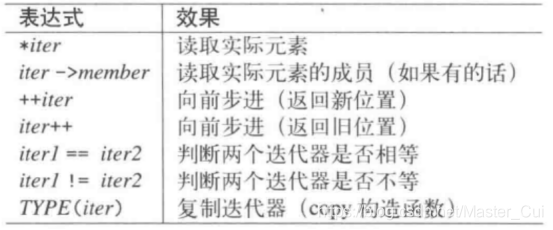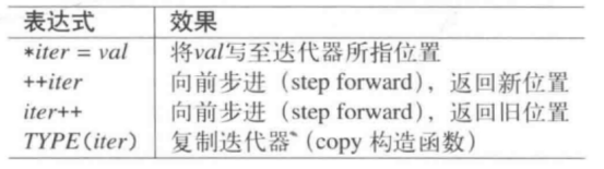 输出迭代器类似于输出流(只能向输出流中写入数据),只能向输出迭代器中写入数据,输出迭代器的常用操作如下