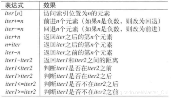 加强版的双向迭代器,在双向迭代器的基础上增加了随机访问的能力,能够使迭代器增减某个偏移量,并且添加了比较操作