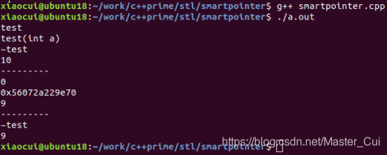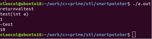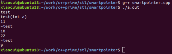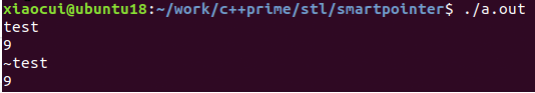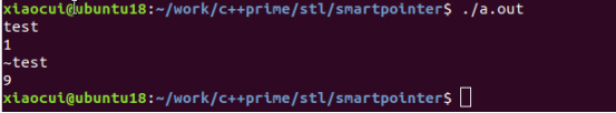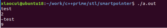 此外上述代码先用默认构造函数创建一个对象并用sp指向,再创建sp2指向的另一个test对象,但是释放的顺序是先释放sp2指向的对象,再释放sp指向的对象,顺序正好相反