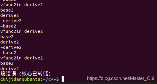 第17行因为虚机制会不停的调用子类中的vfunc2,导致无限递归,修改方法就是将动态调用改为静态调用